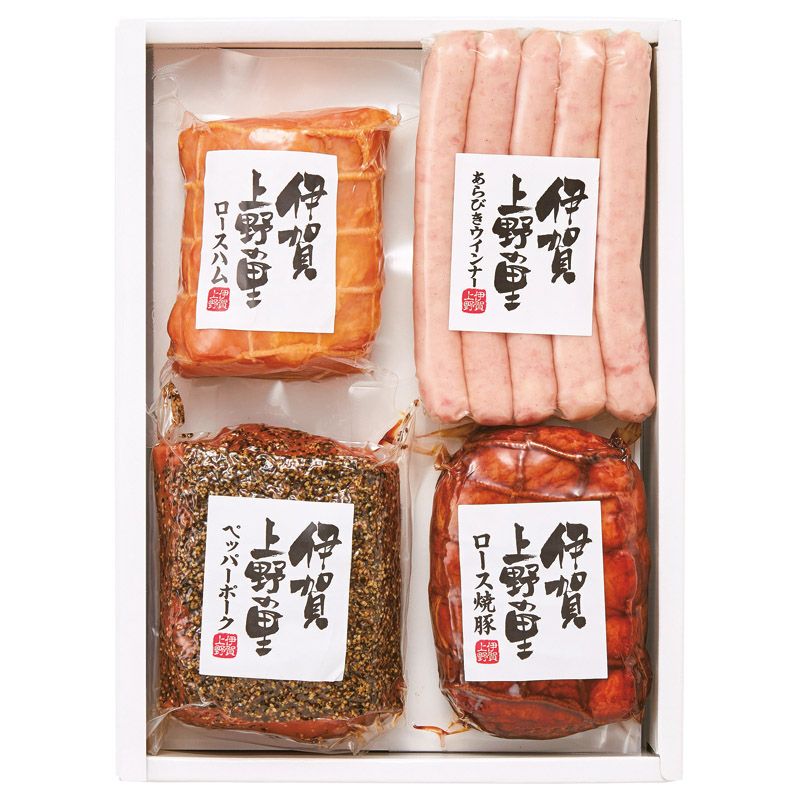 JAS特級ロースハム(250g)・ペッパーポーク(310g)・ロース焼豚(175g)・あらびきウインナー(150g)×各1