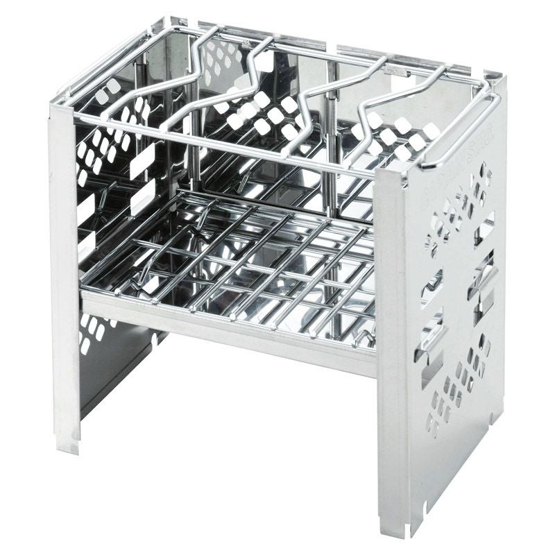 ゴトクとアミがセット。煮炊きや焼き物等いろいろ賢くスマートに使えます。燃料や用途に合わせて炭受けの高さを3段階に調整可能。