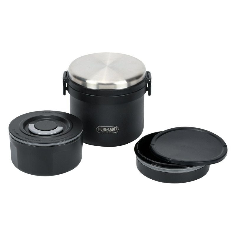 ホームレーベル 全真空ステンレスランチジャー(ブラック)
