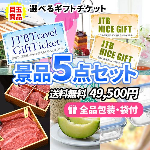 - 選べるギフトチケットを目玉に美味しい&使える景品5点セット【一部商品引換券】【送料無料】