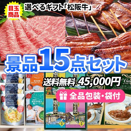- 好きな食べ方で選べる!選べる松阪牛ギフトがメインの景品15点セット【一部商品引換券】【送料無料】