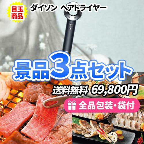 - ダイソンヘアドライヤーを目玉にお肉と魚が入った景品3点セット【商品引換券】【即納商品】【送料無料】