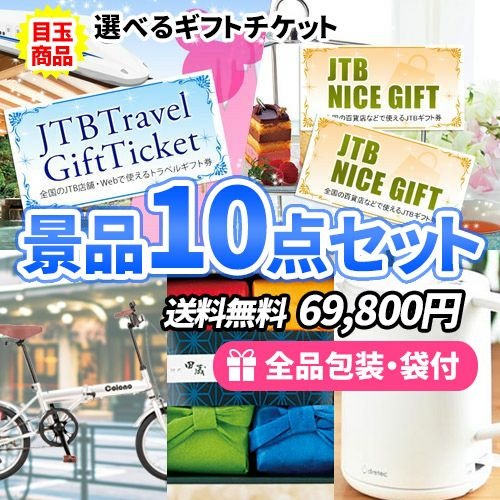 - 貰って嬉しい!選べるギフトチケットと折畳自転車が目玉の景品10点セット【一部商品引換券】【送料無料】