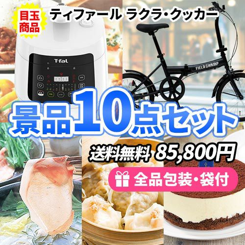 - ティファールラクラクッカーをメインに折畳自転車を含んだ景品10点セット【一部商品引換券】【送料無料】