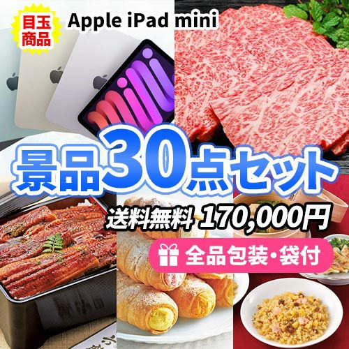 - iPad miniを目玉に多人数でも対応可能な景品30点セット【一部商品引換券】【多点数】【送料無料】
