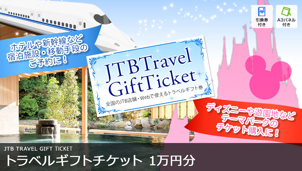 ホテル・新幹線のご予約からディズニーや水族館などレジャー施設のチケット購入など、全国のJTB店舗・JTBWebサイトでの商品購入にご利用できるトラベルギフト券です。