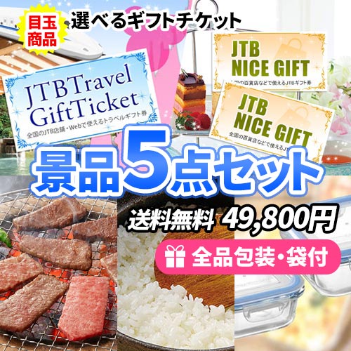 - 選べるギフトチケットを目玉に美味しい&使える景品5点セット【一部商品引換券】【送料無料】