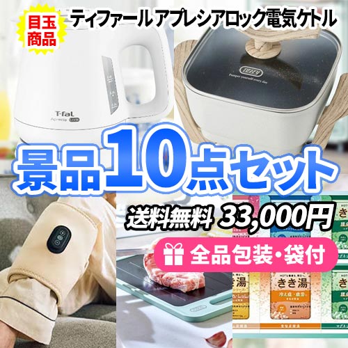 - もらって喜ばれる商品を詰合せた電気ケトルが目玉の景品10点セット【送料無料】