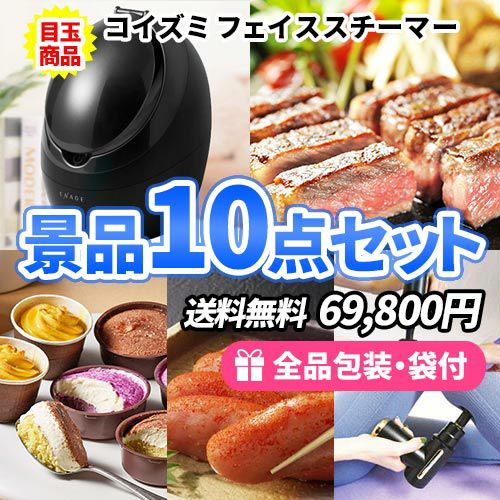 - フェイススチーマーをメインにとろける旨さ!サーロインステーキ付き景品10点セット【一部商品引換券】【送料無料】