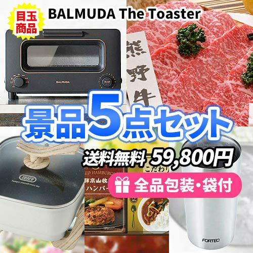 - バルミューダトースターをメインにお家で使える家電の入った景品5点セット【一部商品引換券】【送料無料】