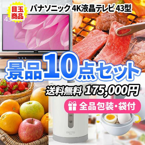 他の画像を見る 4Kテレビやダイソン掃除機を目玉にバルミューダなど豪華家電が入った豪華景品25点セット【一部商品引換券】【送料無料】 販売価格 ¥ 498,000 税込 詳細を見る お気に入りに登録する