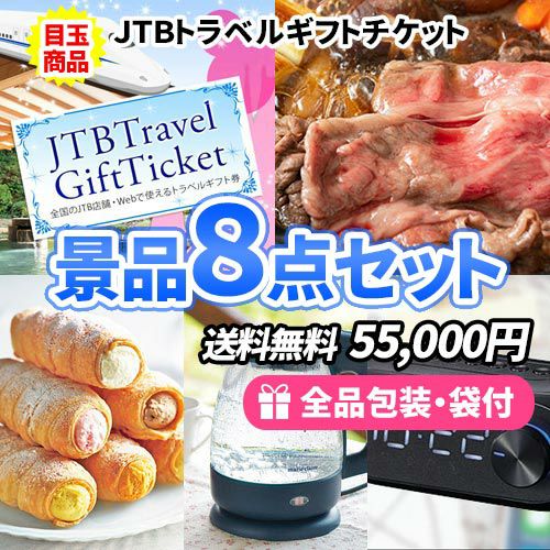 - トラベルギフトを目玉にお手軽商品を揃えた景品8点セット【一部商品引換券】【送料無料】