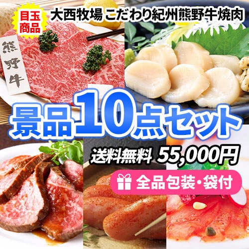 - 定番のお肉・海鮮とバラエティに富んだ食品の入った景品10点セット【商品引換券】【即納商品】【送料無料】