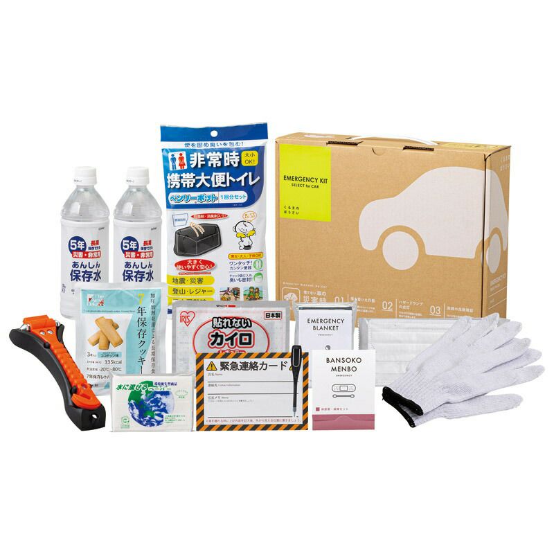 地震、渋滞、豪雪、土砂崩れなど乗車中の「もしも」は色々あります。そんな時に安心できるこだわりの車載用防災セット。「一家にひとつ防災セット」になっている今、車にも防災セットを常備しませんか?