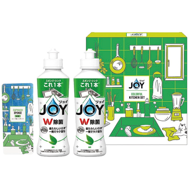 P&Gジョイとスポンジがセットになったカラフルなキッチンセット。