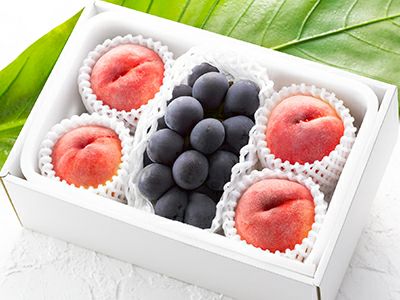 <“季節限定”旬鮮お届け!> 濃厚な香りと甘みの巨峰に、果汁の甘さが溢れる桃。夏の銘果2品をセットにしました。 旬の食材を一番おいしい時期にお届けいたします。 季節ならではの食べ方をお楽しみください。 【引換券の販売は8月上旬までの季節限定品です。】 ●当選者様の商品引換のお申込み締切:8月中旬まで● ●当選者様への商品のお届け可能期間:7月下旬~9月上旬● 【セット内容】 桃 4玉、巨峰 1房(370g)