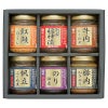 別撰福神漬(約120g)・のり佃煮(約125g)・豚肉ねぎみそ(約125g)・牛肉しぐれ煮(約70g)・帆立ふくめ煮(約120g)・紅鮭ほぐし(約85g)×各1 ■アレルギー:小麦