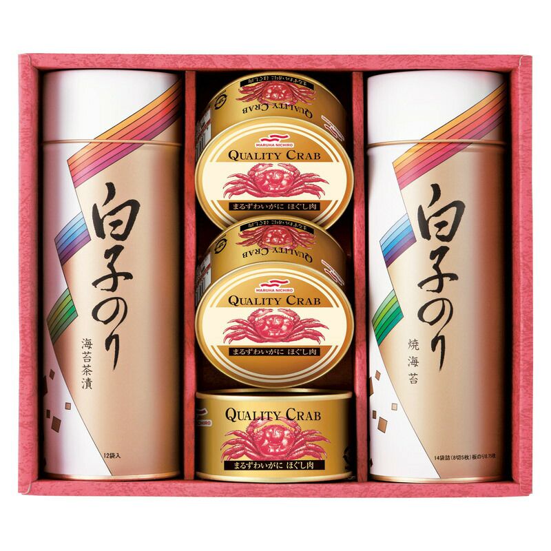 まるずわいがにほぐし肉(約110g)×3、焼のり14袋詰(8切5枚)・のり茶漬(12袋)×各1 ■アレルギー:乳・小麦・かに