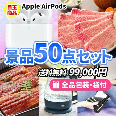 AirPodsに美味しいグルメがメインの喜ばれる景品50点セット【一部商品引換券】【送料無料】のレビューを書く
