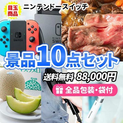 盛り上げたい方必見!!ニンテンドースイッチが入った豪華景品10点セット【一部商品引換券】【送料無料】のレビューを書く