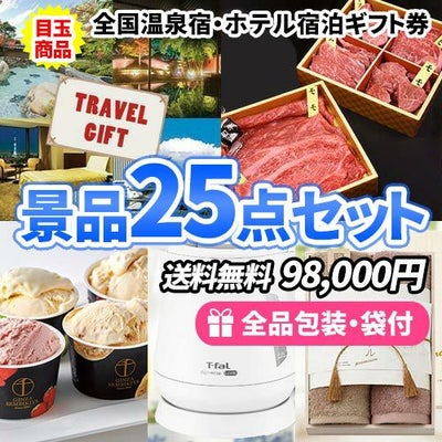 全国温泉宿・ホテル宿泊券がメインの景品25点セット【一部商品引換券】【多点数】【送料無料】のレビューを書く
