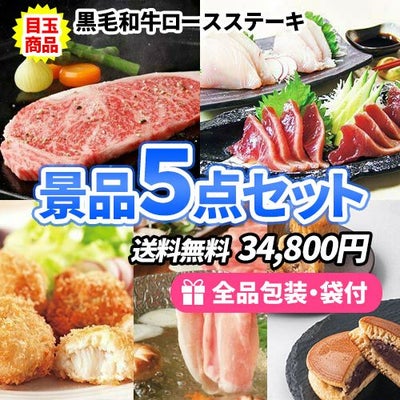 黒毛和牛ステーキが目玉の美味しい景品5点セット【商品引換券】【即納商品】【送料無料】のレビューを書く