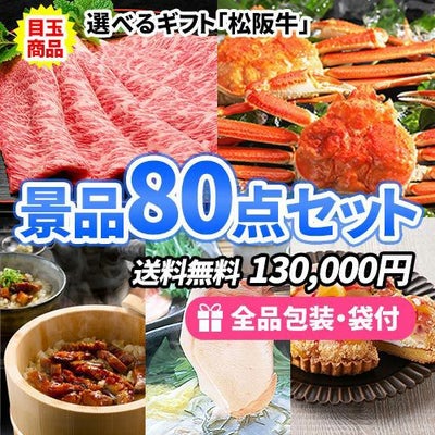 選べる松阪牛ギフトがメインのこだわりの食品が詰まった景品80点セット【一部商品引換券】【送料無料】のレビューを書く