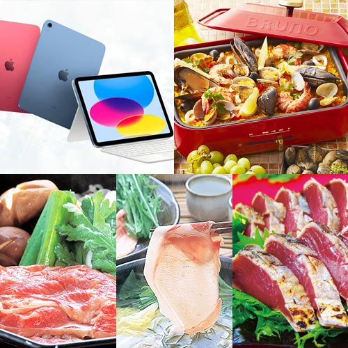 iPadを目玉に一度は食べたい豪華産直品を含めた景品8点セット【一部商品引換券】【送料無料】