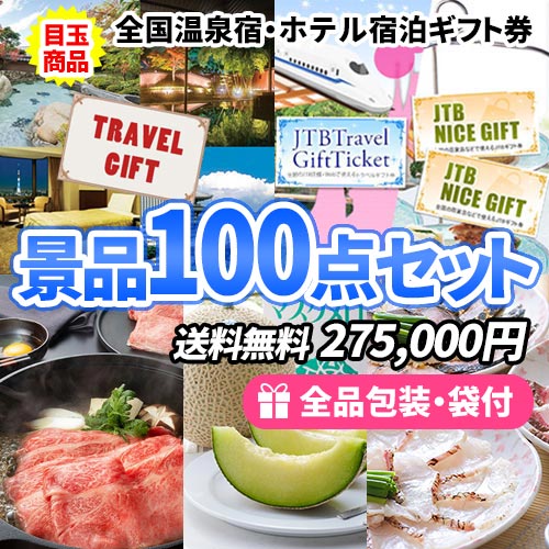 全国宿泊券&選べるギフトチケットがメインの景品100点セット【一部商品引換券】【送料無料】