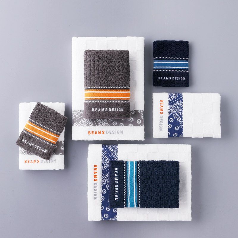 BEAMS DESIGN チェッカーバンダナ フェイスタオル2P(ネイビー)
