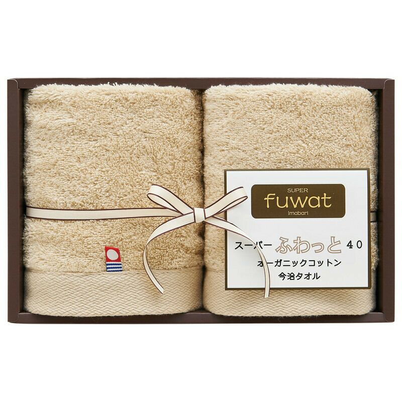 スーパーふわっと40 オーガニックコットン今治ハンドタオル2P(ベージュ)