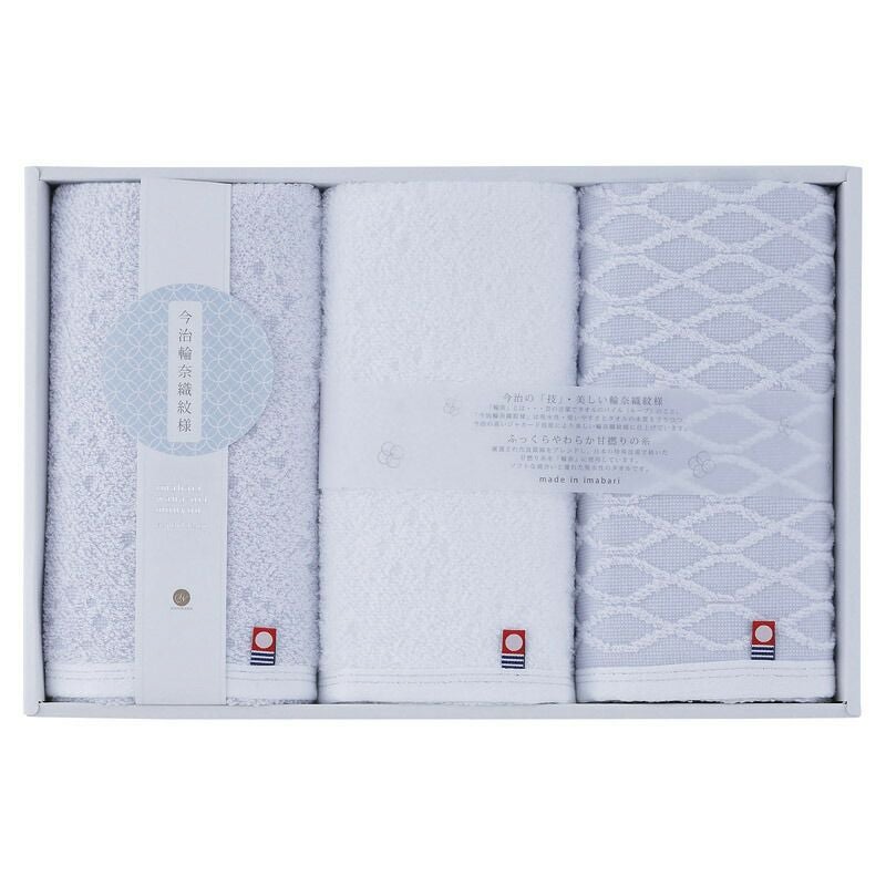 今治輪奈織紋様 あられ&つなぎ フェイスタオル3P