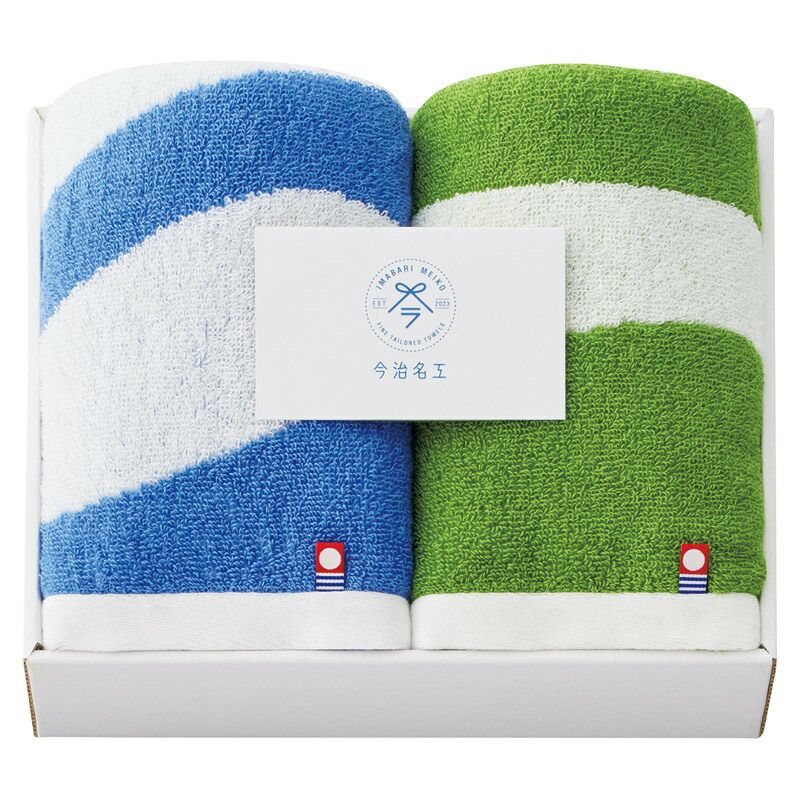 今治タオル 今治名工 フェイスタオル2P(ブルー×グリーン)
